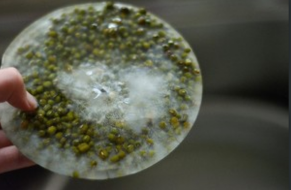 第三步、把冷冻的绿豆拿出来,不用解冻,直接丢进开水里,盖上盖子煮10分钟,绿豆就开花了。