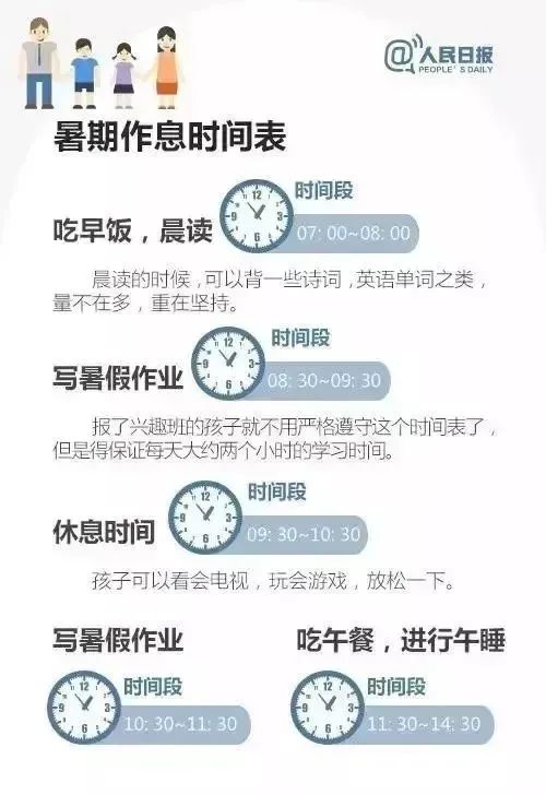暑假作息时间计划表(人民日报给孩子的暑假时间表,快收藏!)