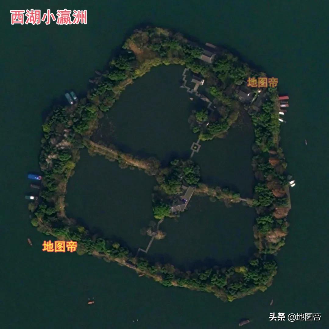 西湖中有一个岛名为小瀛洲,面积约0.06平方千米,其中水面积占60%,形成湖中有岛,岛中有湖的独特景观。