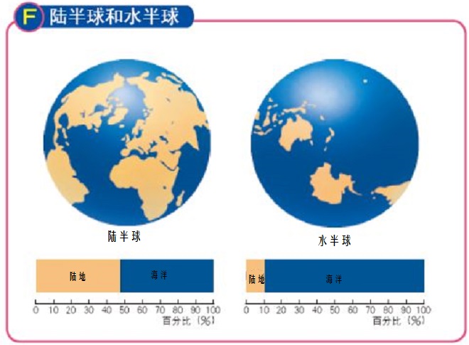 除了利用经纬线来划分地球以外,我们还可以根据地球表面的海陆面积分布来进行划分,当然地球表面海洋占了绝大多数的面积,大约有3.62亿平方千米,占了地球总面积的71%,而陆地只有1.48亿平方千米,占了地区总面积的29%,而且陆地在地表的分布是分散的。所谓的陆半球,就是西经1°32’,北纬47°13’为中心的半球,该半球包括了七分之六的陆地面积,反之以东经178°28’,南纬47°13’为中心的半球,称为水半球。