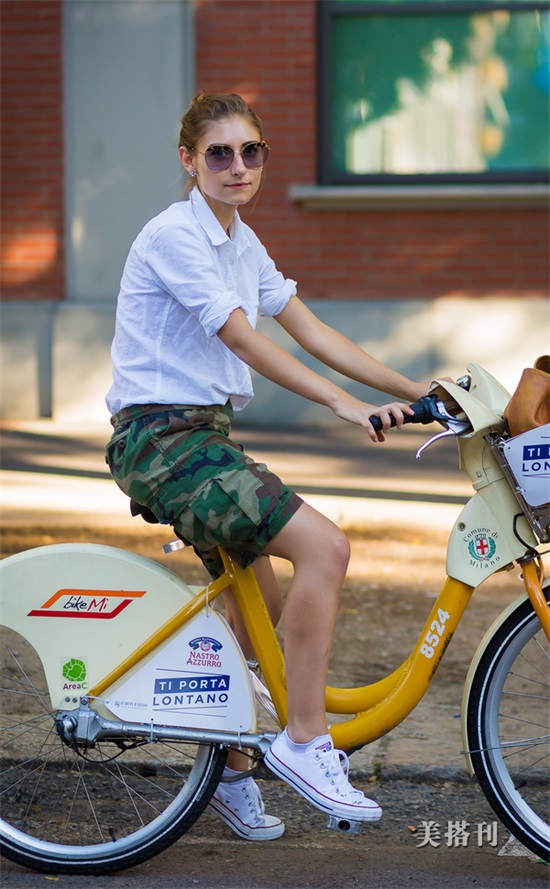 除了旅游小白鞋,还有帆布小白鞋,搭配上白衬衫和迷彩的热短裤,简约的帅气风要溢出屏幕啦~