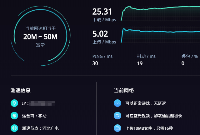 我们来测试一下用这种方法,使用移动4G网络,电脑上网速度如何。