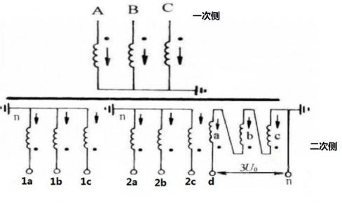 为便于理解,我们将变比规整成:(10/√3)/(0.1/√3)/(0.1/√3)/(0.1/3)