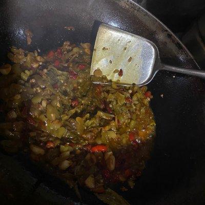 11、油热后加入花椒,豆瓣酱,以及刚刚切好的配料炒大概3分钟,主要是炒香,这个时间大家自己定义