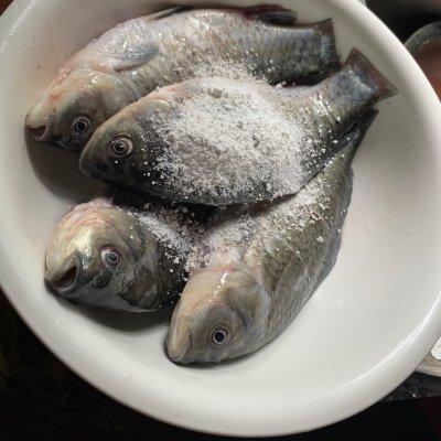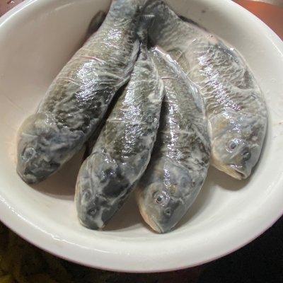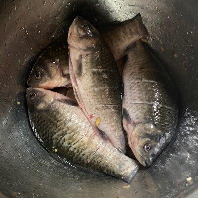 1、市场上买了4条鲫鱼,老板处理好后,回家洗洗,加入姜和少量料酒揉搓鱼的各个面两分钟后,再腌制10分钟。