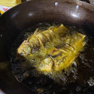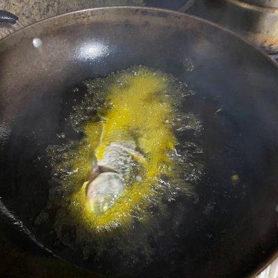 1.这道菜油要多,如果想吃少一点油的就不用做了,给不怕油多的小伙伴。 2.炸鱼要炸酥,小火炸,免得糊了。