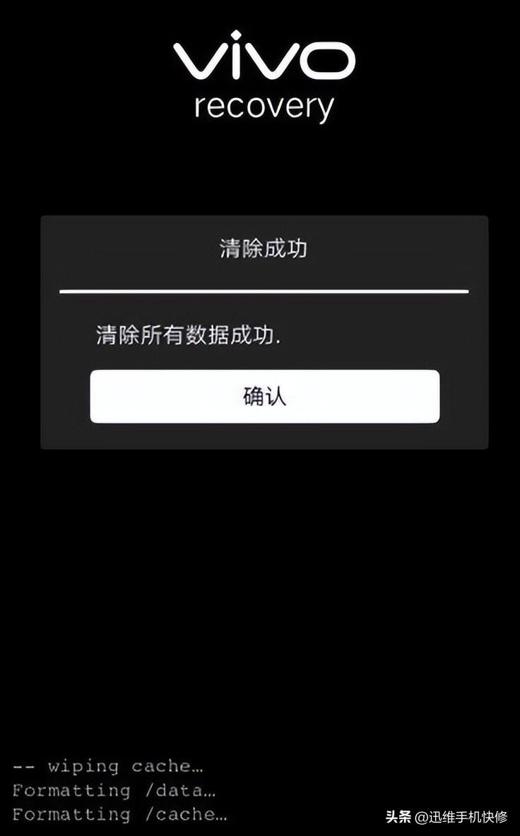 7.进度条读完后会提示安装成功,点击“确定”,手机跳转到“recovery”界面,最后