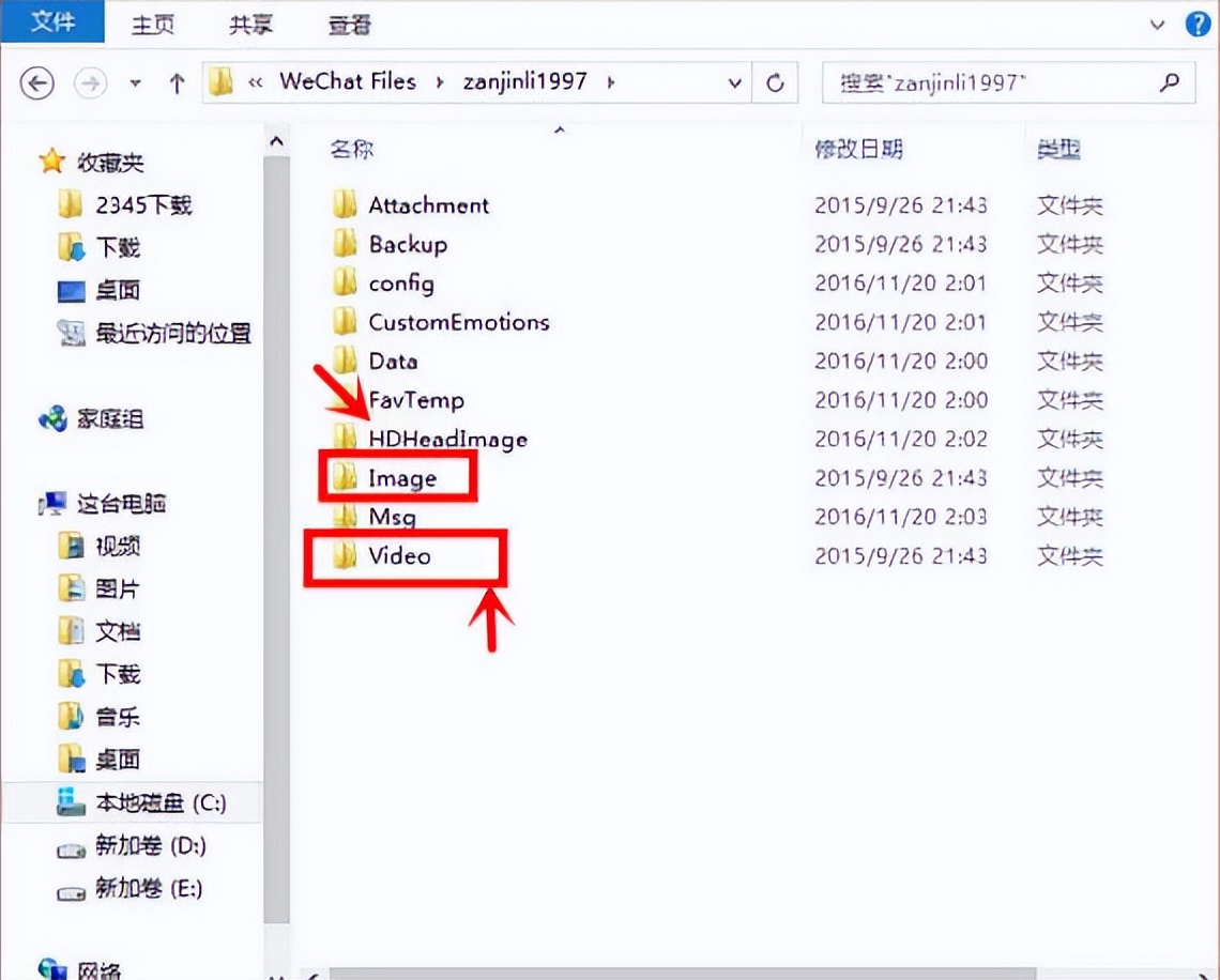 第七步:点击【image】或【video】等文件夹,微信聊天记录的图片等就保存在里面。