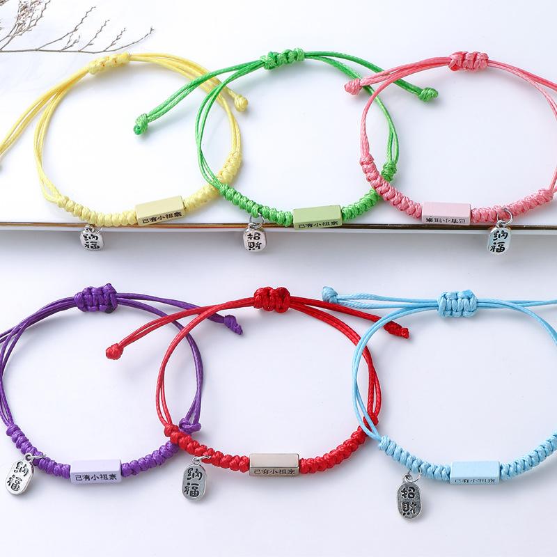 第三排线第四排线 如此类推编至适当的长度, 长度因各人手腕的粗幼而定将末端多余的线剪去两端的线可用三编法编起 一条色彩缤纷的幸运红绳便完成了,手链编法的编法如此简单,还不快试试身手。