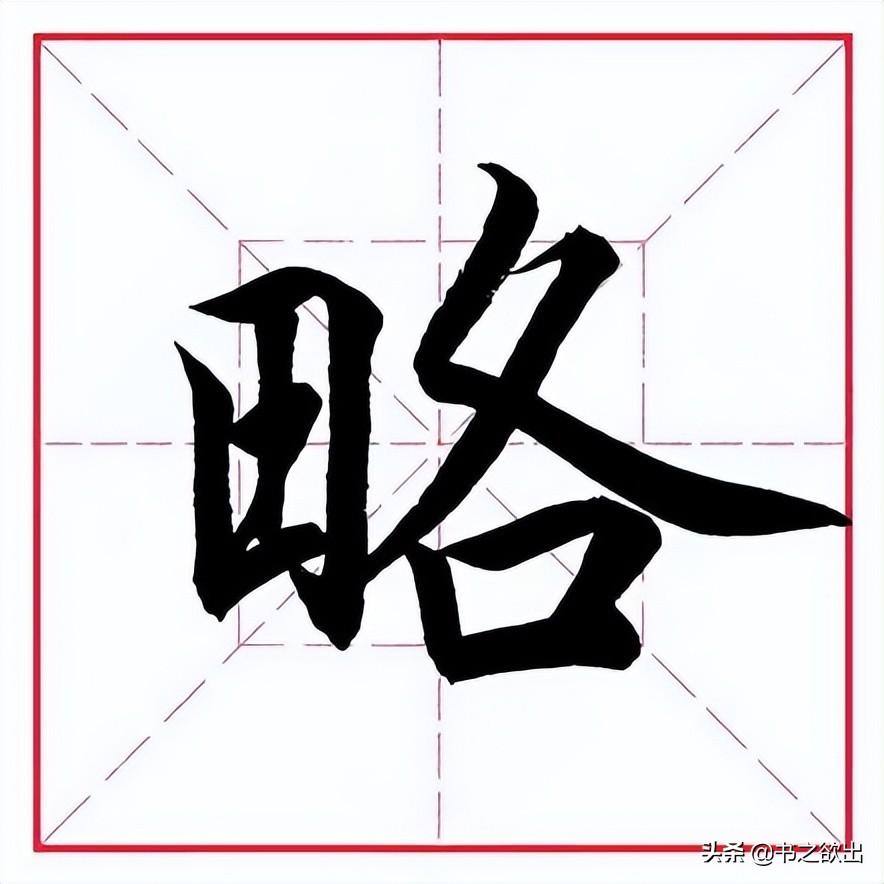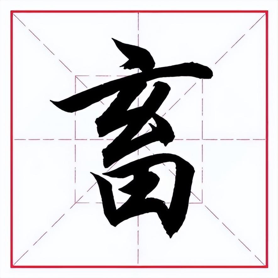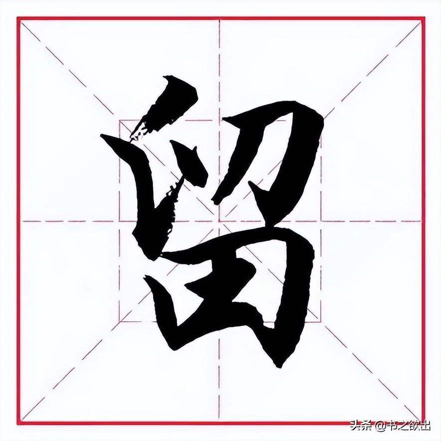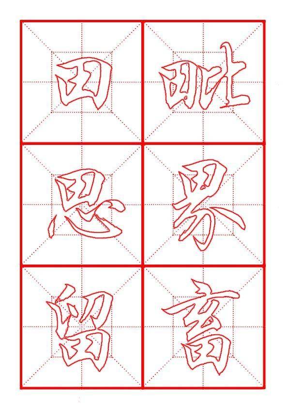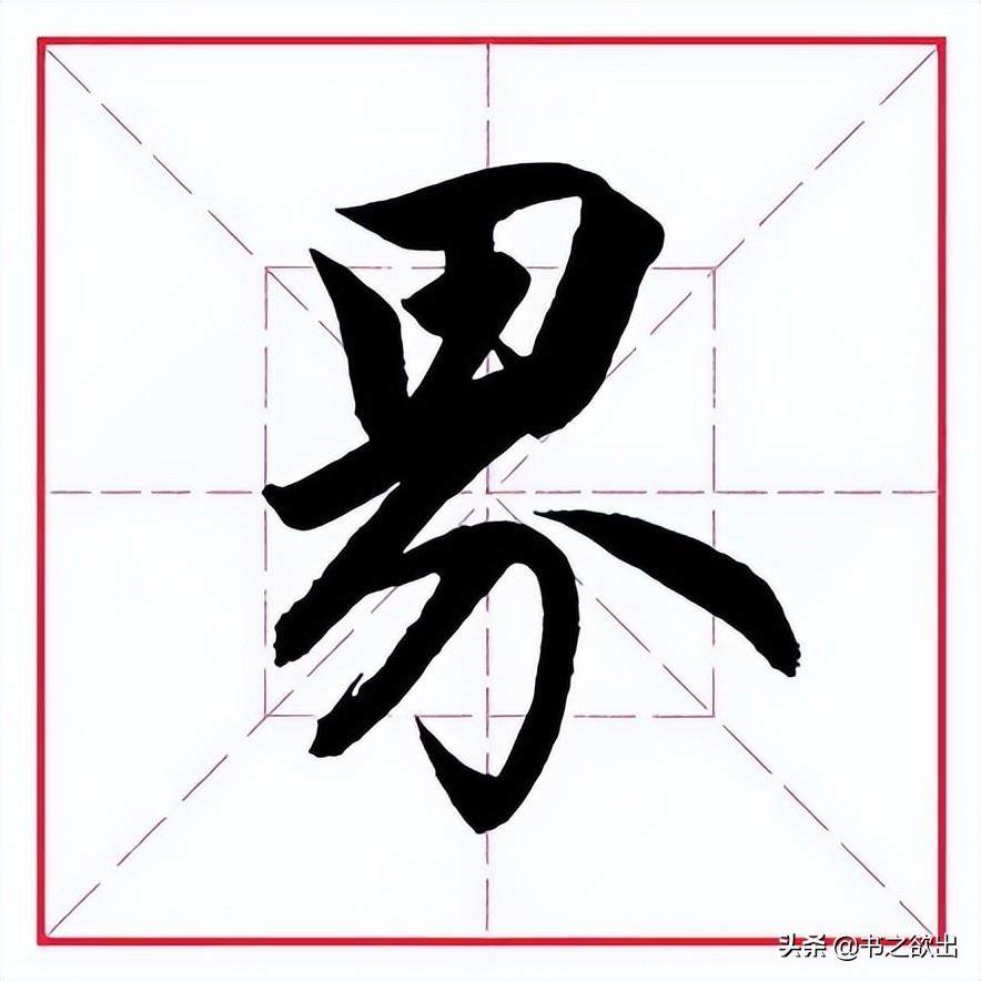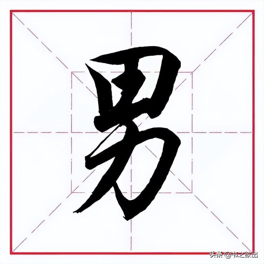 不管是楷书、行书,还是在具体应用中,“田”字形体都应呈上宽下窄之态。在字中居上时整体斜势抗肩,底横左探,不要写大;居下时宽扁平正,以托上部;居左时则紧凑收敛,切忌写宽。