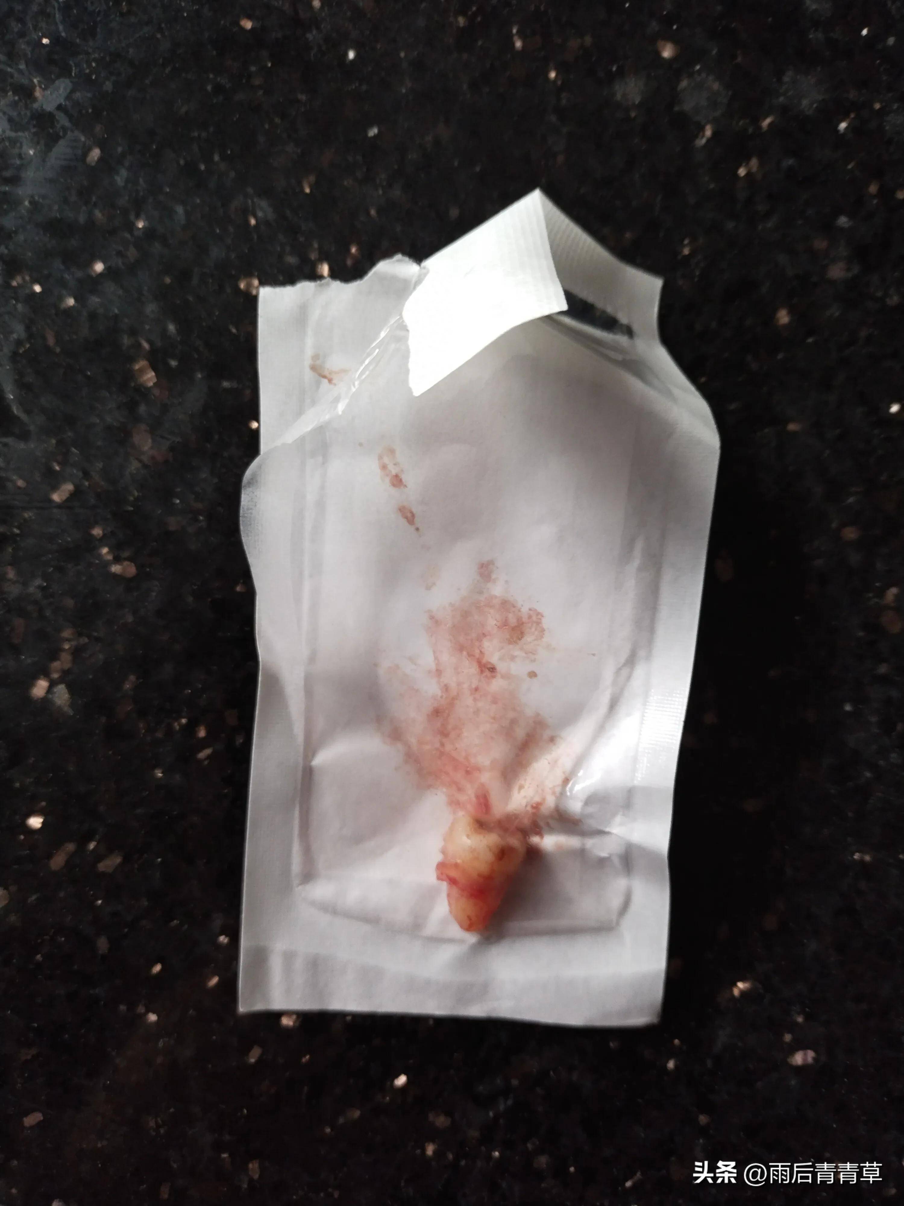 这个拔出来的牙真的是蛮恶心的,居然还带着肉,搞得我想起排骨鸡腿之类骨头上带着肉的食物就不舒服了这算不算拔牙后遗症??三四个小时麻药过后那叫一个疼,跟没拔之前一样疼,我是一边哭一边吃饭的,好在第二天就不疼了,这次只拔了一颗,说是一次只能拔一颗,我怀疑牙医小哥哥想赚两次200,剩下的一颗过几年再说吧,今年是肯定没勇气去拔了!