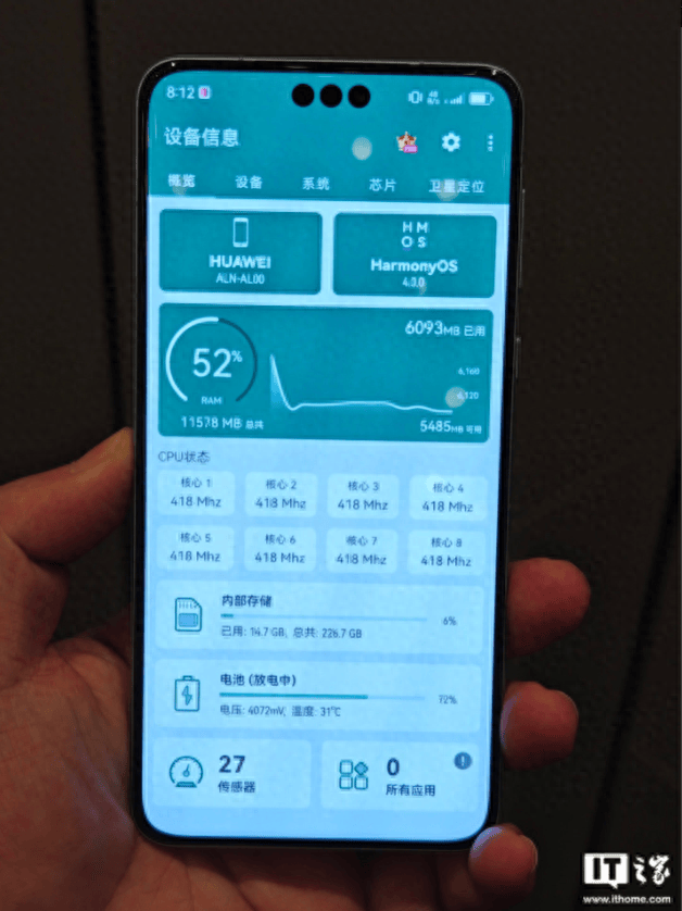 关于这款手机的处理器,无论是华为官网还是线下商店均未公布。IT之家从第三方检测软件识别到的信息显示,
