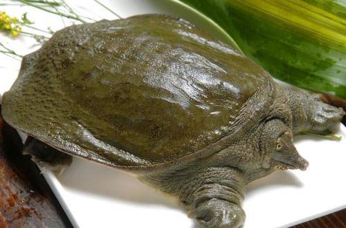 王八一般称为鳖,鳖(学名:Pelodiscus sinensis)是鳖科、鳖属动物。成体背盘长192.0-345.0毫米,宽138.8-256.0毫米。头中等大,前端瘦削。吻长,形成肉质吻突,鼻孔位于吻突端。眼小,瞳孔圆形。吻突长于或等于眼间距,等于或略短于眼径。耳孔不显。背盘卵圆形,后缘圆,其上无角质盾片,而被覆柔软的革质皮肤。背盘前缘向后翻褶。盘面有小瘰粒组成的纵棱,每侧7-10余条,近脊部略与体轴平行。腹甲平坦光滑,可具7块胼胝,分别在上腹板、内腹板、舌腹板与下腹板联体及剑板上。腹甲后叶短小。四肢较扁。第五指、趾外侧缘膜发达。体背青灰色、黄橄榄色或橄榄色。腹乳白色或灰白色,有灰黑色排列规则的斑块。幼体裙边有黑色具浅色镶边的圆斑,腹部有对称的淡灰色斑点。颚与头侧有青白间杂的虫样饰纹。