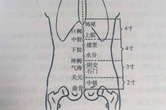 上脘位于人体中线上,在上腹部左右的位置,肚脐眼上的5寸。从肚脐眼开始,以一根指头的宽度作为测量标准,往上量5个指头的宽度就是上脘。上脘穴可以改善胃部方面、消化方面的问题,如果情况比较严重可以利用针灸刺入上脘穴缓解。