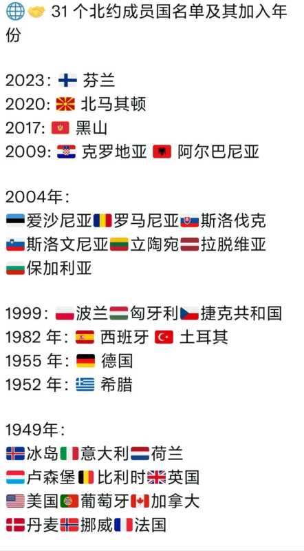 31个北约成员国及其加入年份列表