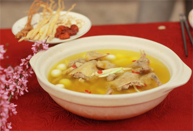 山药枸杞大枣鸽肉汤的补肾效果是特别好的,这个汤具有补脾养胃生津补肾的效果。而且食疗的效果也比较全面,对于脾虚吃的少,经常腹泻,肺虚咳嗽肾虚遗精药品等都有很好的效果,制作方法也特别简单,把鸽子肉洗干净放在砂锅里面,山药大枣都一同放进去,开大火烧开撇去血沫,加入姜片,转乘中小火慢炖40分钟,加入适量盐几粒枸杞,再炖5分钟就能出锅。