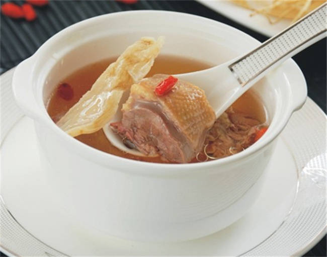 枸杞党参鸡汤,我们都知道枸杞的滋阴补肾效果特别好,还有明目的功效,所以用枸杞炖的汤都有补肾的效果,对于虚劳肾亏,腰膝酸软等肾虚引起的症状都有很好的改善效果。这个汤的做法也特别简单,把鸡肉洗干净可以整只鸡放进砂锅里面,加入适量姜片葱段党参,把鸡肉炖至软烂,加入适量盐调味,再放上10粒枸杞,炖5分钟美味的鸡汤就做好了。汤虽然好喝,有滋补功效,但是不要喝太多,每周喝两次就可以。
