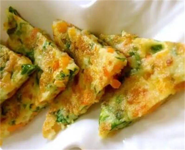 如果早上的时间不是很赶的话,也可以做点鸡蛋蔬菜饼,把鸡蛋放在盆里面打散,切点自己喜欢的蔬菜放到鸡蛋里面,再加上适量的面粉搅成糊状,放一点盐十三香调味儿,面糊搅成酸奶状,然后用勺子摊在平底锅里面烙制两面金黄,取出来切成大小合适的块儿放在盘子里面撒上一点黑胡椒,吃起来味道特别好。
