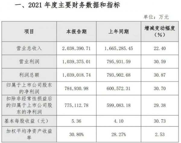 3月11日晚间,泸州老窖披露2021年业绩快报,公司实现营业总收入203.84亿元,同比增长22.4%;归母净利润78.49亿元,同比增长30.7%。