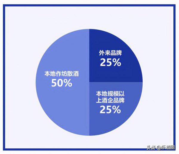 从市场份额来看,云南地产酒处于绝对优势地位,占据75%的市场份额,其中地产散酒占据50%市场份额,其余市场被外来品牌所瓜分,主要以川酒、黔酒为主。