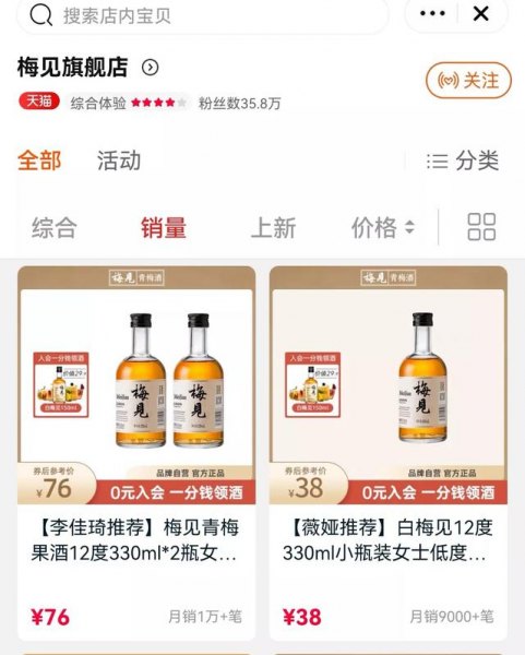 数据显示,今年上半年,梅见品牌果酒在上述电商平台的销售额超4332万,销售额市场份额为22.8%;销量35.41万件,销量市场份额为17.6%。
