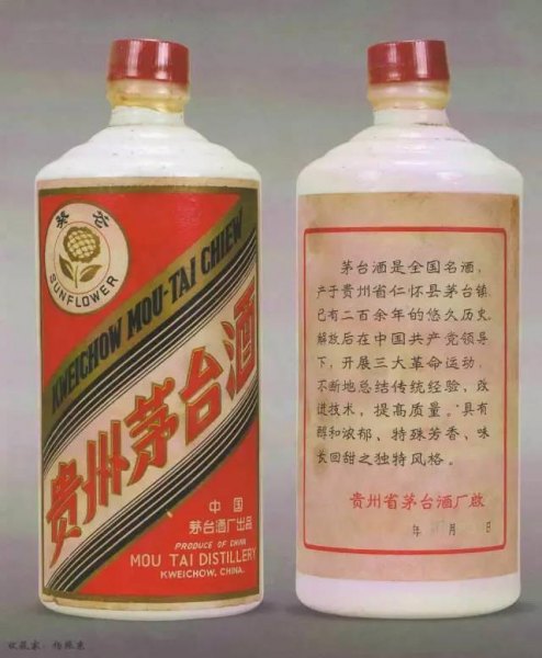 1978年,原用于外销的“葵花牌”商标开始恢复为“飞天牌”,同时酒厂为了避免浪费,将剩余的的25.8万张“葵花牌”前标(落款是“中国茅台酒厂出品”),使用在内销茅台酒上,背标是“三大革命”,落款是“贵州省茅台酒厂啟”,简称“三大葵花”。目前为止,“三大革命”和葵花茅台一样价值不菲的,不仅是因为数量稀缺(文革开始后,茅台酒厂产量提升缓慢,甚至出现下滑,存世量更少),还因为有一定的政治色彩、历史价值。这些老酒价高,很多不法分子铤而走险造假,酒友真的要提醒十二分了!