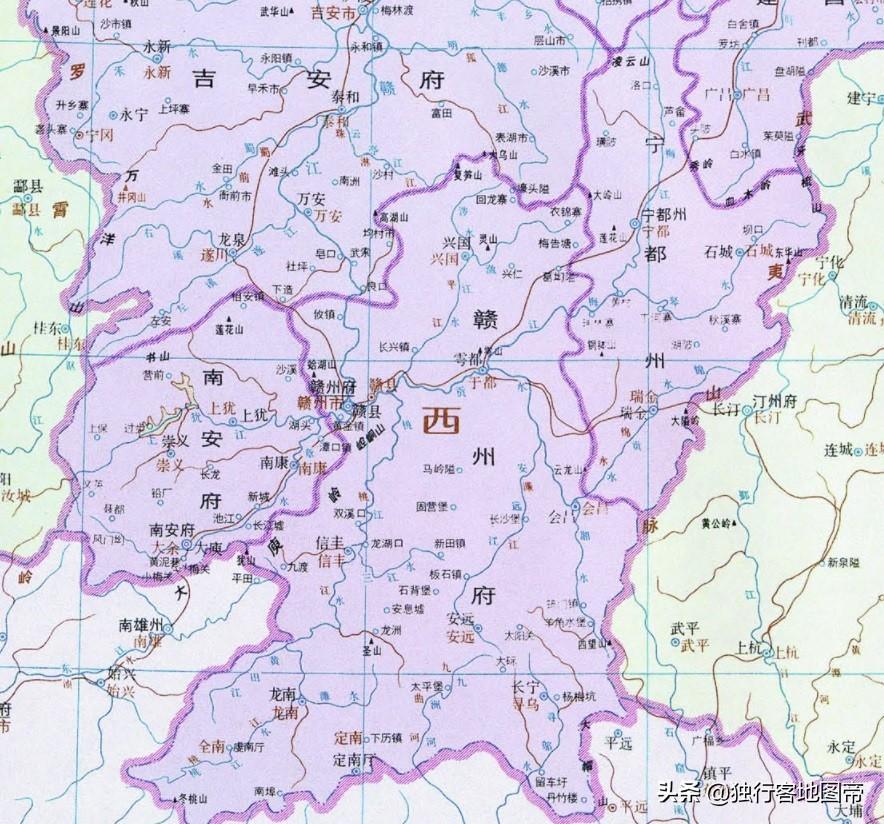 现在赣州西北是吉安,唐朝赣州的西北也是吉州(今称吉安)。更有意思的是,唐朝吉州、抚州和现在的吉安、抚州辖区也几乎没有变化。