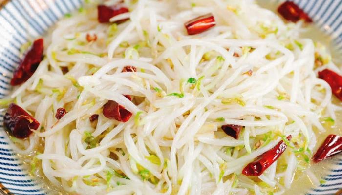 5、豆芽是一种低卡路里、高水分、高纤维的食物,经常吃豆芽,对瘦身有帮助。