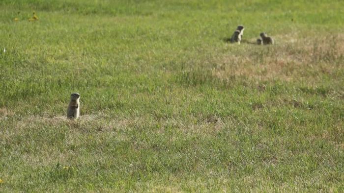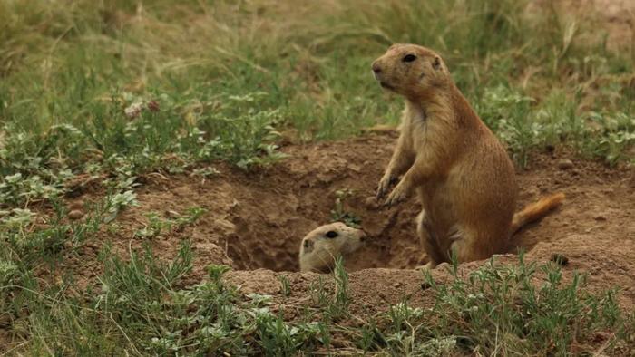 然后,她看到了这群松鼠玩起了野生动物版的“亲吻标签”(Kissing tag,一种社交游戏),只是松鼠并不是真的在接吻,它们只是看起来是。在我的营地周围,我很快就明白了马特奥在找什么。我看到一片棕色枯草地,上面布满了小洞,每个洞里都探出一个小脑袋。当另一只地松鼠靠近时,它们的脑袋就会贴在一起。这不是亲吻;这是一种气味检查。