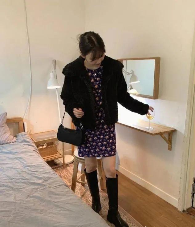 这种情况真的不如搭配一条连衣裙,你可以选择飘飘然的过膝裙,也可以选择膝盖以上的短款直筒裙,小面积层叠和小面积露肉都能让你成为冬天中一道亮丽的风景线。