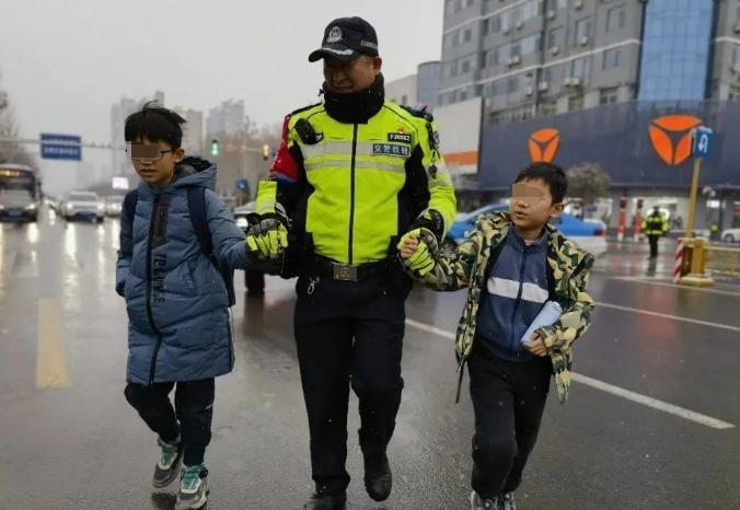 除了类似上面这些在意外情况下的温暖举动,为保障辖区学校门前良好的道路交通秩序和学生安全,聊城交警常态化开展“星空护学”行动的同时,还通过量身定制“一校一策”方案,确保非节假日期间师生上下学出行安全,聊城交警还以北顺小学、阳光小学、英才小学、滨河实验小学作为试点,率先推行“拉车门”工作法。家长送学生到校门口路段时,车辆不熄火,由护学岗民辅警主动上前拉开车门,牵领学生下车后进入等待区,由家长志愿者再护送到校门口,由此实现了学生下车到校园的‘无缝对接’。