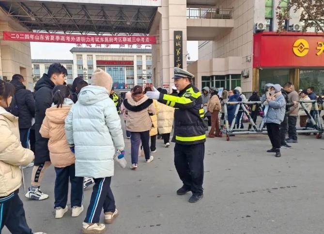 1月8日,山东省2024年夏季高考外国语听力考试开考,为确保考试期间道路交通秩序,聊城交警结合辖区交通管理工作实际,精心组织、提前部署,严格落实各项道路交通安保措施,认真做好考生服务工作,为广大考生创造一个安全、畅通的道路通行环境。通过加强考场门前及周边道路的交通疏导和秩序维护,指挥接送考生的车辆即停即走,防止考点门前路段发生拥堵,确保考场周边道路交通安全畅通。同时,开辟“绿色通道”,应对考生突发情况紧急求助,为考生排忧解难,全力为考生保驾护航。