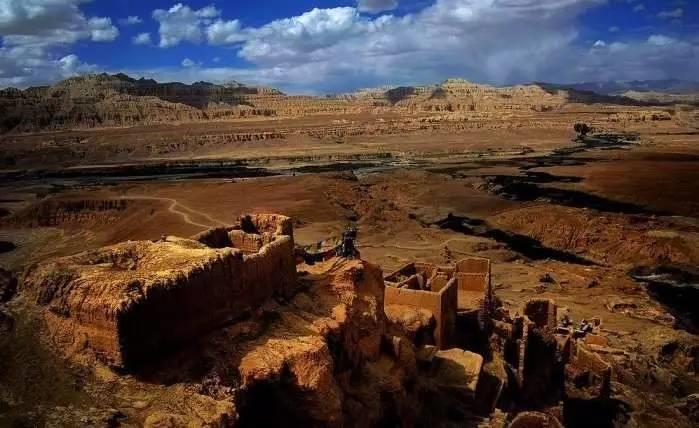 坐落于阿里扎达县境内的古格王朝如今成为了遗址。古格王朝整座城堡建筑在一座300多米高的黄土坡上,地势险峻,洞穴、佛塔、碉楼、庙宇、王宫有序布局,自下而上,依山迭砌,直逼长空,气势恢弘壮观。这些洞穴多为居室,密密麻麻遍布山坡。在这片备受摧残的土地上,唯有寺庙保存完好。