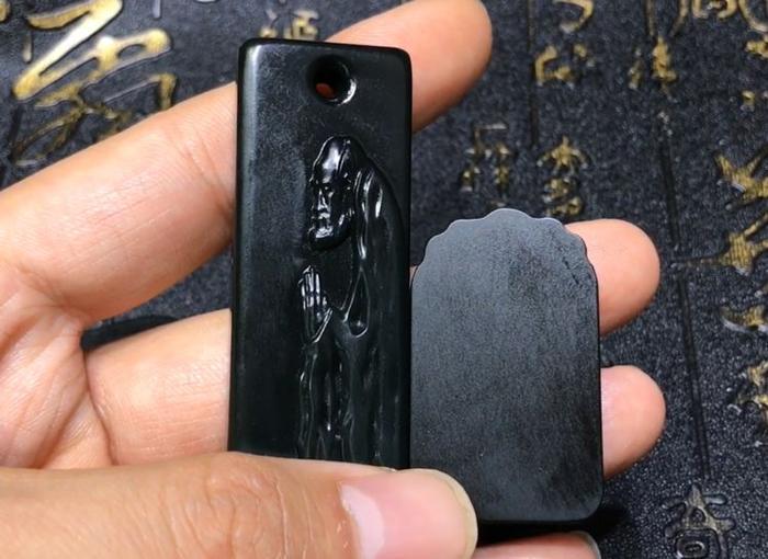 在收藏购买和田玉时候收藏黑色和田玉的时候,目前市场上可能见到和一种常见的料子做一下对比,就是青海的黑底的青玉和墨碧去做对比,很多朋友问类似的知识给大家找两个案例,这两个料子对比来说是比较大的,如果对比非常小的话大家无法去通过图片去看出来,本来图片就有一定的误差,下面给大家看2块料子。