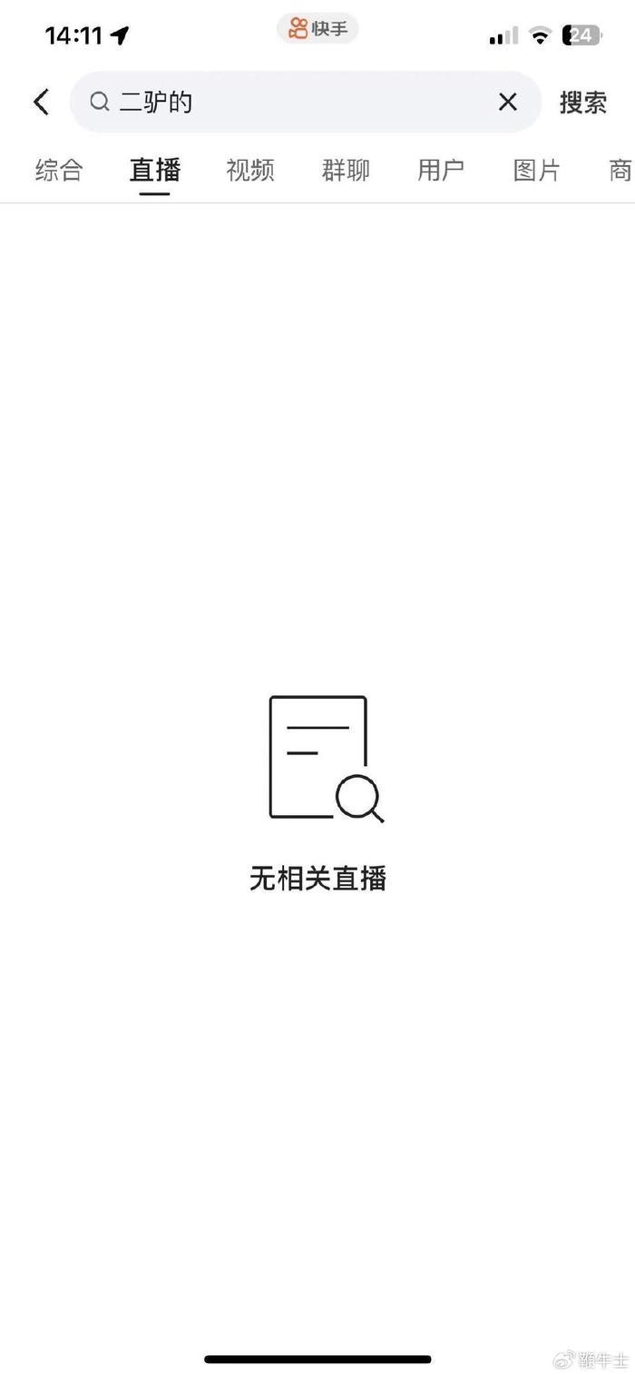 就在刚刚,鞭牛士在快手搜索「二驴的」并未显示该主播账号,也无相关直播记录,疑似被快手封禁。