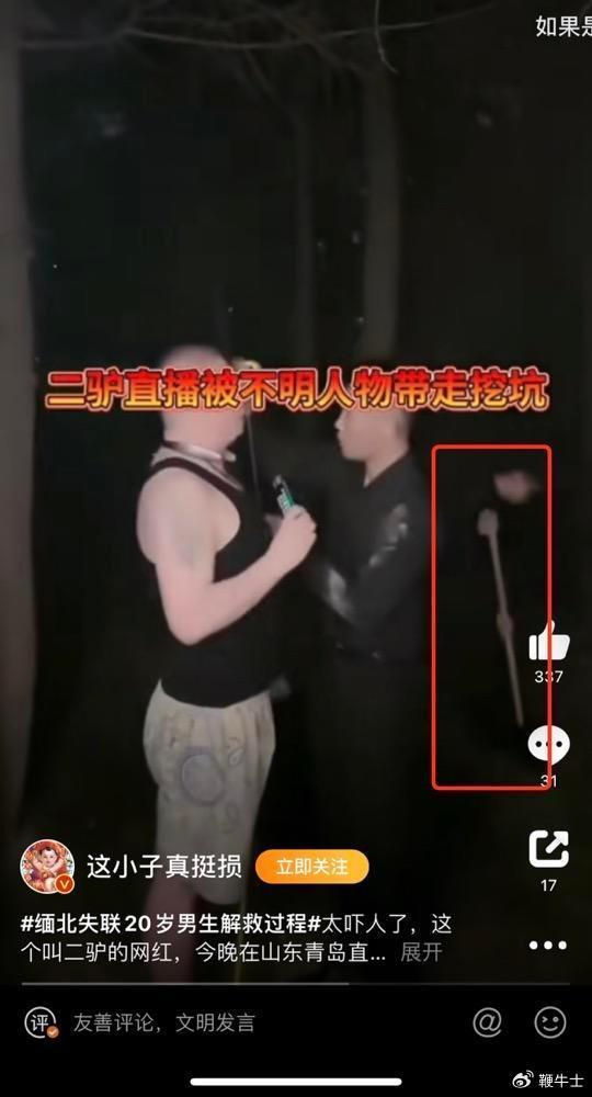 「当地大哥」将「二驴的」绑架到一片荒芜的空地上,扬言要活埋「二驴的」,后面的小弟已经开始在挖坑了,黑社会性质十足。