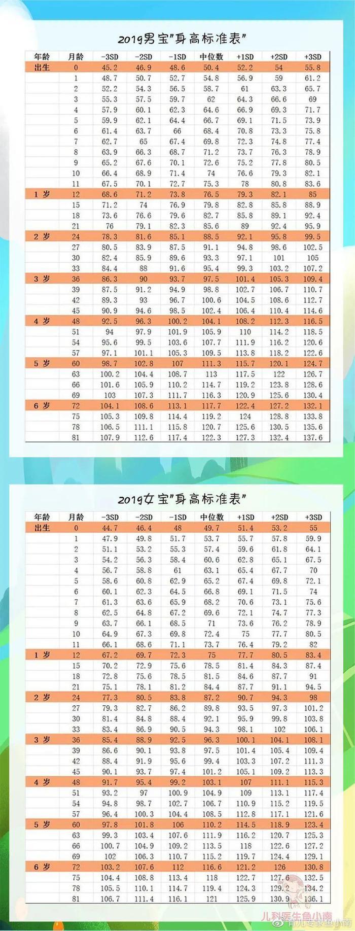 以下是第二个表,可以对比,了解您的宝宝是中等、中下、矮小?