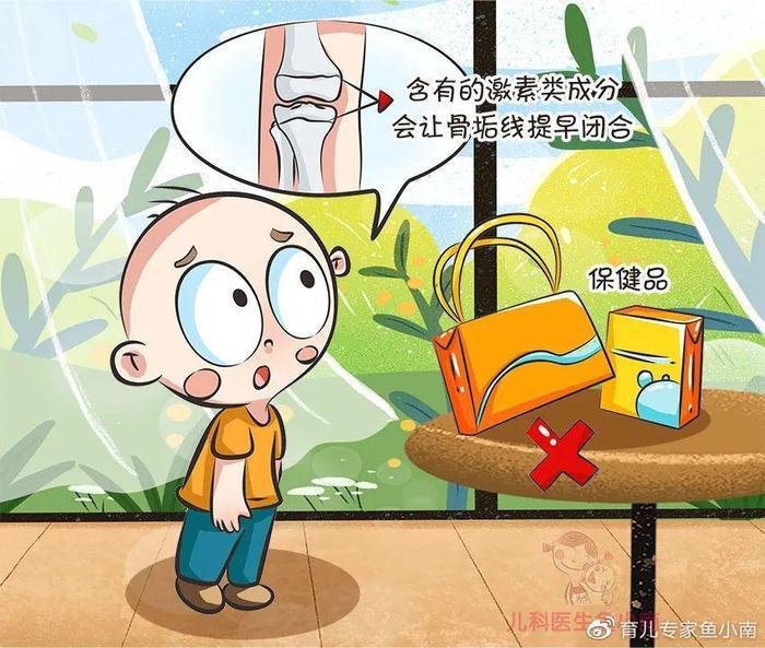 这里特别要提醒家长,宝宝的成长是按照规律循序渐进的过程,千万不要误信各种广告给宝宝乱补。虽然一些促生长的保健品,短期内可能让宝宝长得更快,但其中含有的激素类成分会让骨垢线提早闭合,长远地看,负面影响宝宝的最终身高,那才悔之莫及啊。