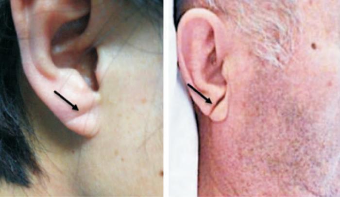 这种耳垂出现折痕的情况,通常被认为是后天获得的,在婴儿及儿童时期,这种情况几乎不存在,而随着年龄的增长,出现耳朵折痕的几率会逐渐增加,来自丹麦的一项研究显示,在30岁左右的人群中,出现耳垂折痕的几率为4%,而70岁以上人群中,这种折痕的出现率则高达50%,同时耳朵折痕的出现几率与人种还有一定关系,白种人中出现这种折痕的几率更高,而亚洲人相对低一些。