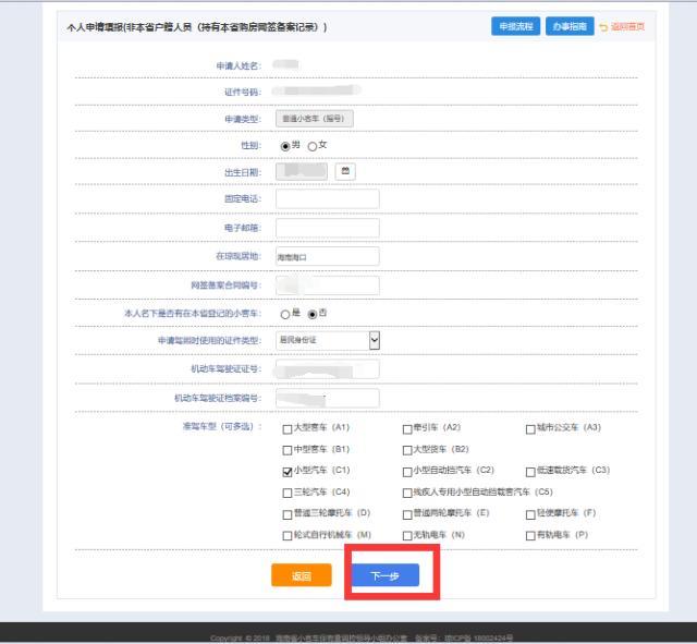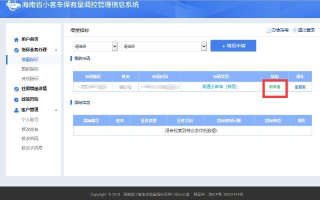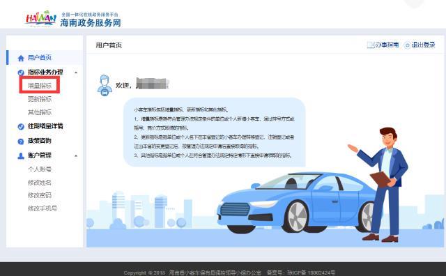 第四步:跳转到海南省小客车保有量调控管理信息系统的用户首页界面,即为注册成功