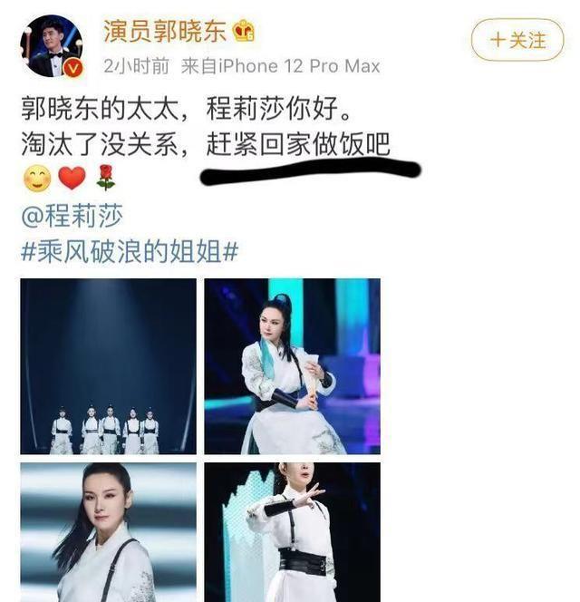 程莉莎没有意识到自己火了,她的老公郭晓东同样没有意识到。于是,郭晓冬在微博喊话,让程莉莎快点回家做饭。最最尴尬的是,他在程莉莎的名字前,加上了郭晓冬太太的前缀。
