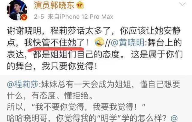 我个人最最讨厌的是最后半句,郭晓东特意在回家做饭之前加上了“赶紧”二字。这意味着他早就开始期待程莉莎淘汰回家,继续从事家庭主妇的职业,他甚至从未尊重过程莉莎渴望重回职场的决心,并在我们看不到的某些时刻,竭尽所能地打压着程莉莎的信心。