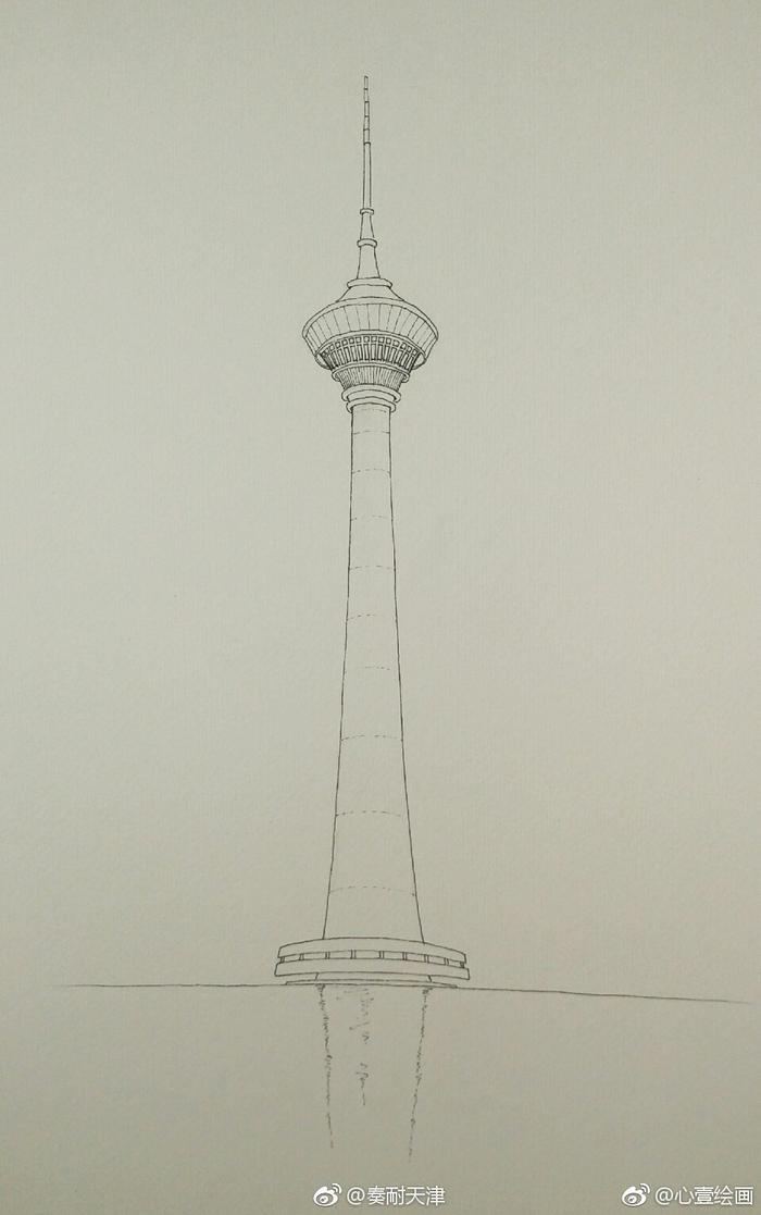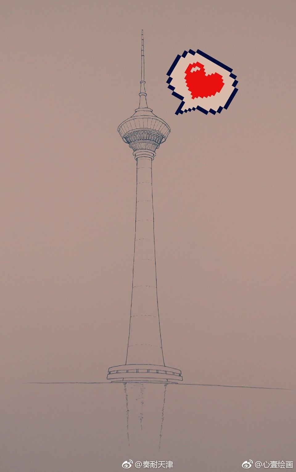 @心壹绘画:之“天津电视塔”天津电视塔,位于市区西南的天塔湖中,塔高415.2米,可同时播出数套电视及广播节目。1991年10月1日,天津广播电视塔落成开播。塔区进门处是小广场,圆形塔座外部飞瀑跌出三层碧水。天塔由塔基、塔座、塔身、塔楼、天线五部分组成,在248-278米处的塔楼内设有瞭望厅和旋转餐厅,在第二层的瞭望厅内,有望远镜可以观看景色。塔座中央设有4部高速电梯。电梯的速度为每秒5米,60秒内可将游客送至塔楼。“天塔”被列入天津十大景致之一,“十一长假”大家都去玩儿了么