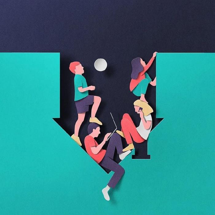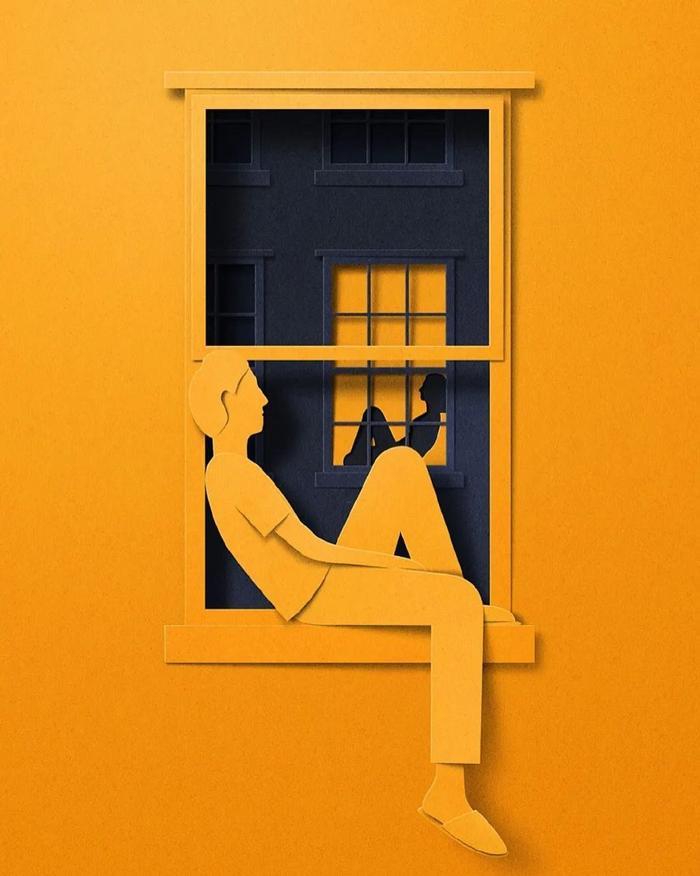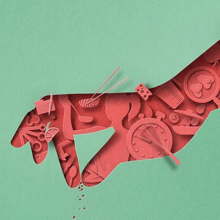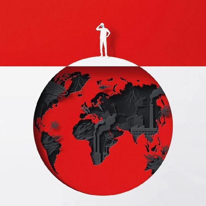 除了富有内涵的讽刺性插画作品,艾科·奥贾拉的作品风格也值得称赞,他的讽刺性插画作品,给人直观感受就是一幅剪纸作品,实际上,每一幅画作都是利用数字软件绘制而成。通过裁剪图案,调整光源的方式,给我们带来舒适的视觉体验。