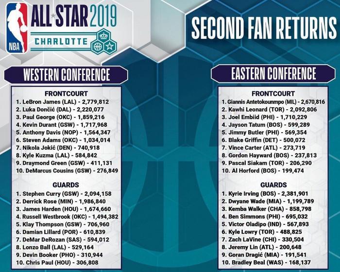 北京时间11号凌晨4点,NBA官方公布了全明星投票第二轮的投票结果,实话实说,这个结果,可能中国球迷不是很意外,但美国球迷,应该很吃惊,应该像03年全明星投票那样:怎么感觉有点违和感?西部前场位置,詹姆斯、东契奇、泡椒占据前三,杜兰特已经跌倒了第四,而西部后场位置,库里高居榜首,但身后罗斯和他的票数差距在缩小,而罗斯已经领先哈登多达31万张选票,库里和罗斯的西部后场“第一人”之争,可能会越来越有趣,这是属于两股球迷之间的较量,一个代表着情怀,一个代表着热爱。