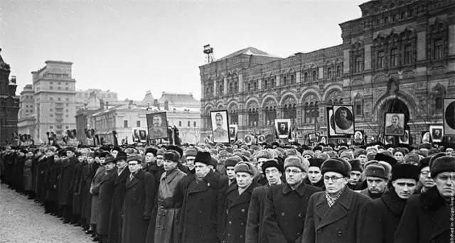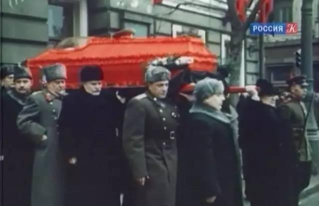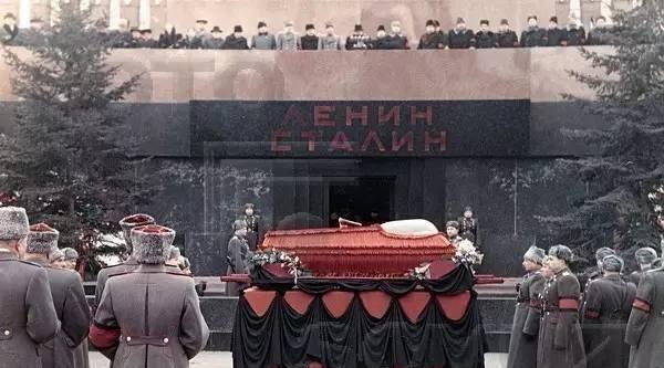 1953年3月5日斯大林去世之后,斯大林的遗体也被装入水晶棺,安葬在列宁墓之中。于是,列宁墓上,多了一块大理石墓碑,写着斯大林的名字。