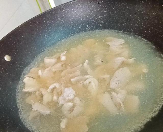 第二步:水开倒入瘦肉,煮两分钟。
