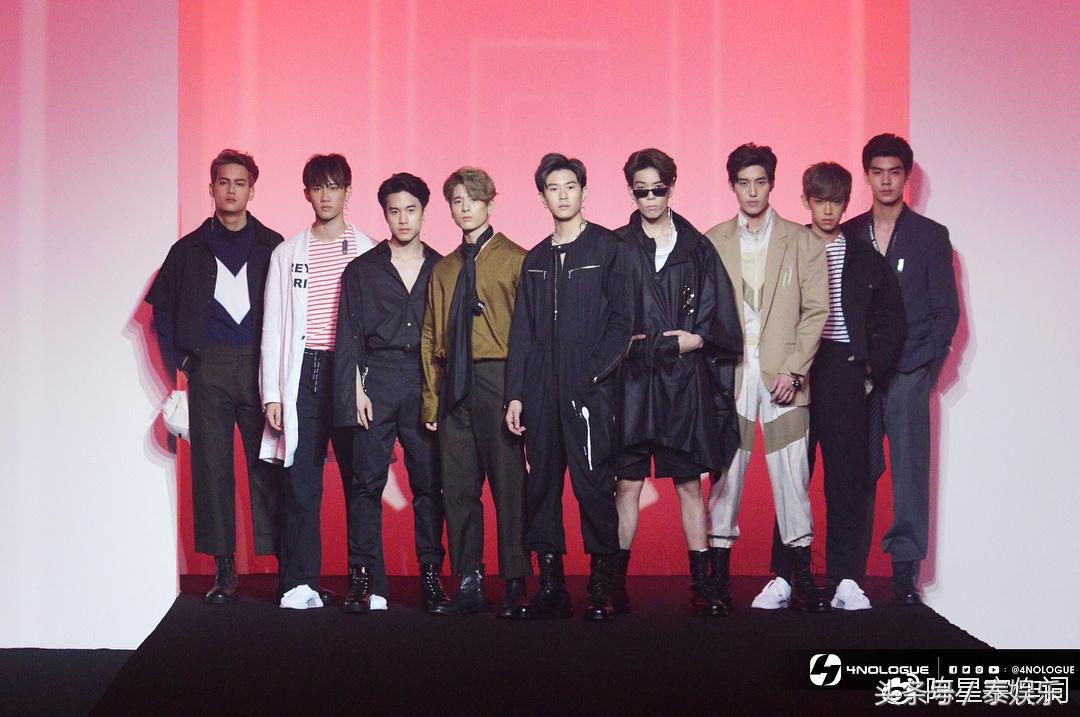 泰国男子偶像组合《9by9 Thailand ( 9X9 ) 》今年将有一系列合体活动,除了电视剧 《兄弟情浓于血 / เลือดข้นคนจาง 》的项目外,近期他们九个人一起出席了2018曼谷国际时装周,为《 Hive SalonX Greyhound Original SS18》 舞台秀场助阵,九个人闪亮登场,成为了现场焦点。(这场秀上,登台明星还有Gxood,Margie,Thanaerng等等。)如图为秀场掠影。