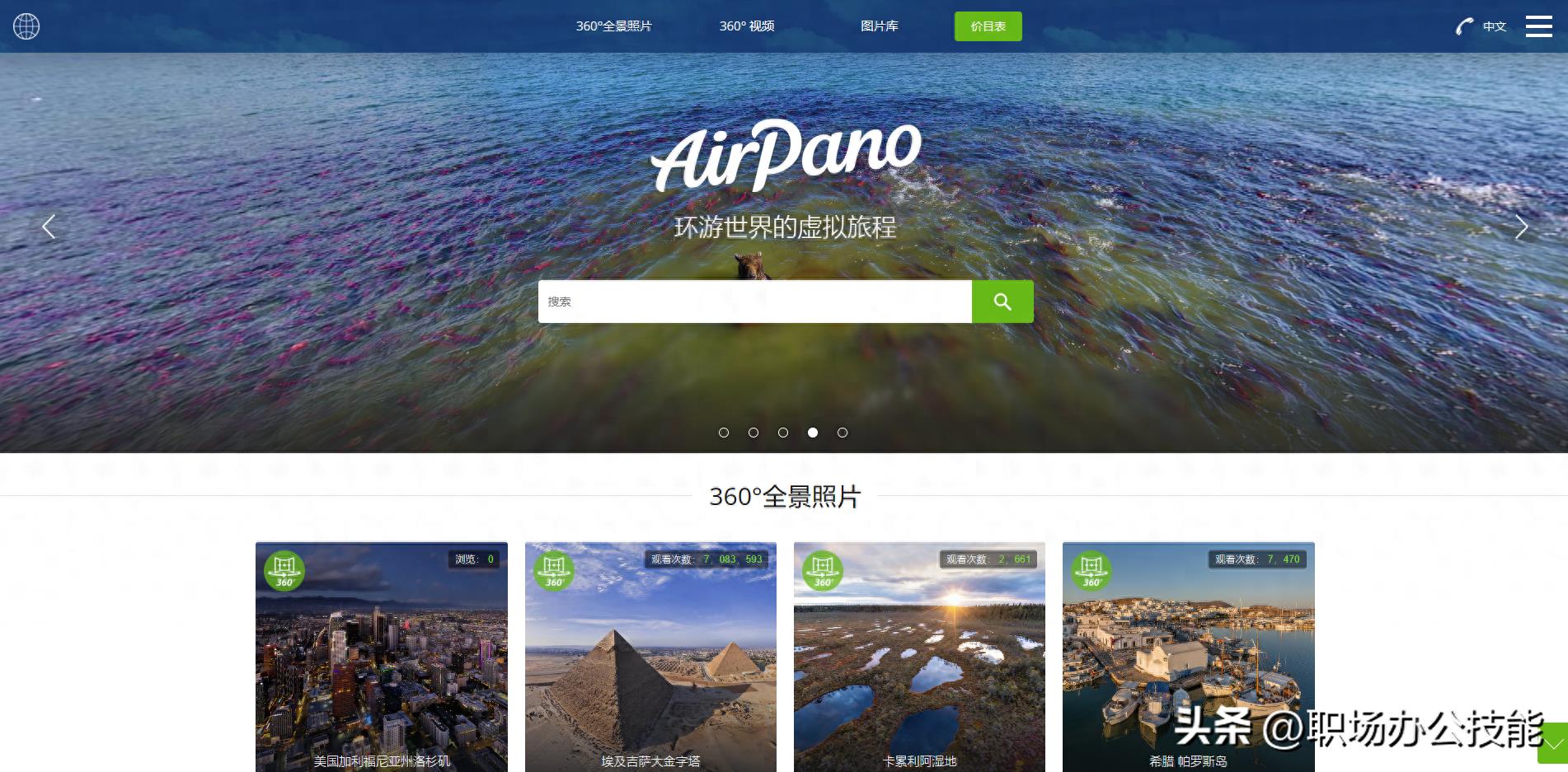 一个足不出户就能让你看到世界美景的网站,是由一家俄罗斯无人机航拍公司创建,它提供了世界各地景点的全景图片和全景视频,视频和图片画质都非常清晰。