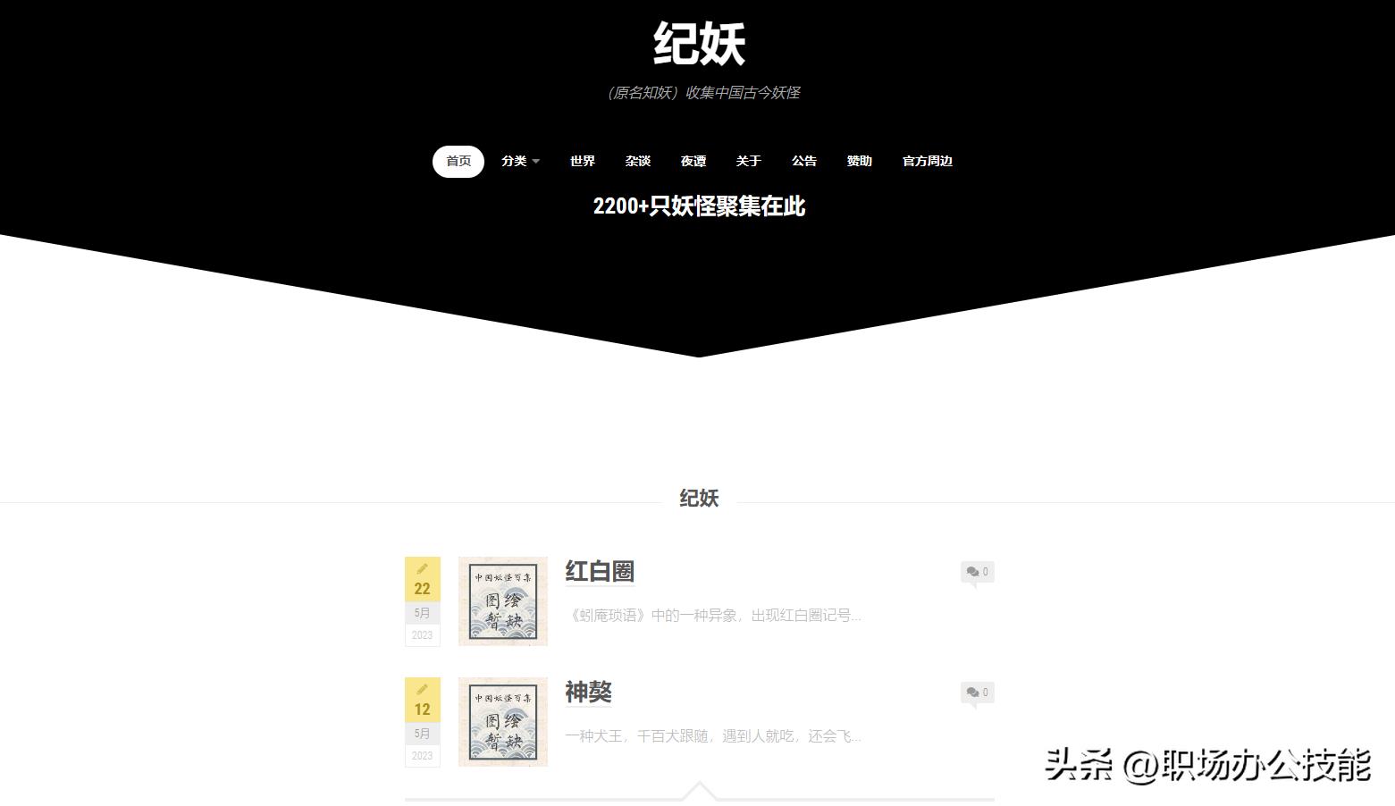 一个收集中国古今妖怪的网站,对出现的各种妖怪比较感兴趣的话就可以看看这个网站,很多小说里、电视剧中出现的妖怪都能在这找到,国内国外的都有。